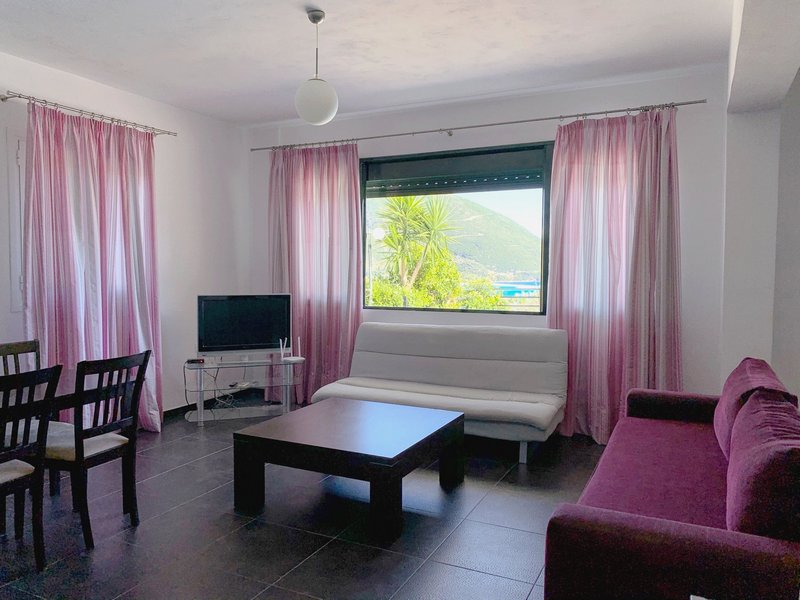 Balcon, vue sur la mer, 2 chambres, 2 lits doubles ou 1 lit double et 2 lits simples, 2 canapés-lits, une connexion Wi-Fi gratuite, climatisation, télévision, salle de bains, lave-linge, fer à repasser, Cuisine entièrement équipée, salon, coin repas